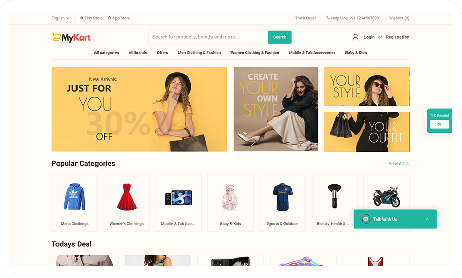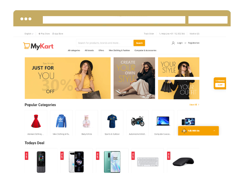 Easily create your E-commerce website with MyKart to showcase your products at their absolute best. MyKart also comes with best in class features to satisfy every business's requirements